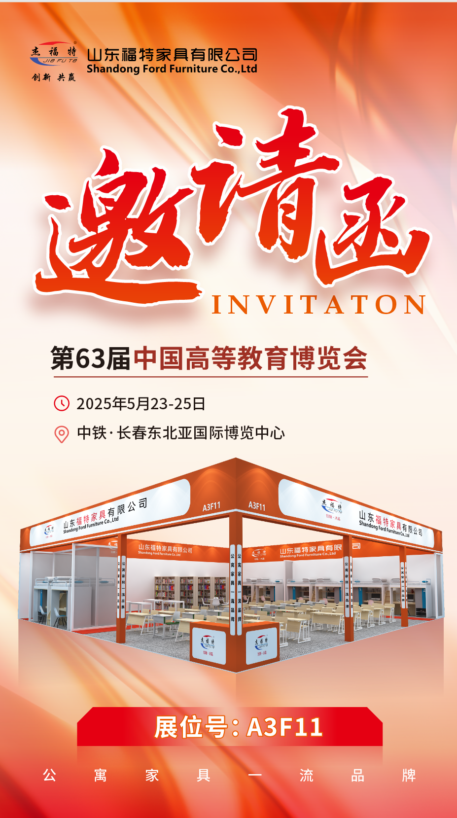 距第63屆高等教育博覽會盛大開幕還有兩天,5月23-25日即將在長春東北亞國際博覽中心盛大舉行,福特家具展會號A3F11,期待您的蒞臨指導(dǎo)!